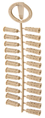 La cheville crampon, à double expansion, est destinée à tous les matériaux. Cette cheville en plastique imputrescible est nervurée sur son ensemble pour ne pas tourner au vissage et possède une collerette (amovible) de faible saillie qui la retient et l’empêche de tourner dans les matériaux creux. Existant en trois tailles pour tous les diamètres de fixation de 2 à 9 mm, elle est disponible en barrette d’accrochage pour faciliter le travail mains libres.