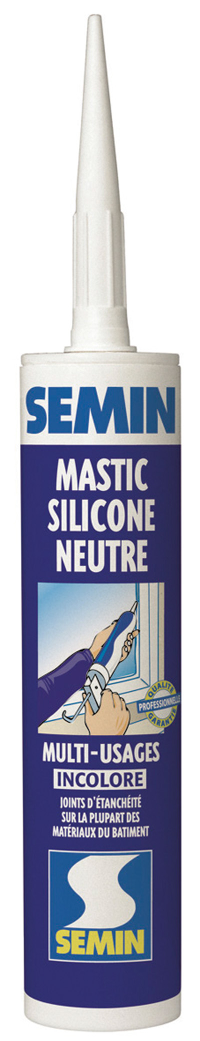 Le Mastic silicone neutre Semin mono-composant oxime permet de réaliser des joints d’étanchéité dans la plupart des matériaux du bâtiment pour les travaux de façade. Son allongement à la rupture est de 250%. Disponible en blanc et en incolore et conditionné en cartouche de 310 ml.
