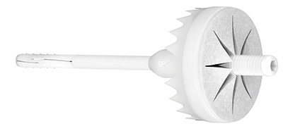 La cheville à visser TFIX-8ST de Rawl est dotée d’une rosace de 60 mm de diamètre dentée pour pénétrer au cœur de l’isolant, dont la partie supérieure est revêtue d’une membrane isolante pour rétablir la planéité de l’ouvrage. Sa tête de vis est recouverte d’un long surmoulage en polyamide renforcé de fibre de verre pour réduire l’effet de pont thermique. Elle nécessite un forage au diamètre 8 mm et une profondeur d’ancrage de 25 mm pour fixer des isolants monodensité de 80 à 300 mm d’épaisseur.