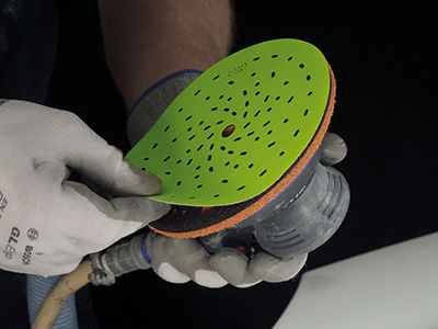 Autre nouveauté, le 5750 Siaspot constitue une alternative aux petits abrasifs de forme ronde ou marguerite de granulométries 2 000 à 2 500 qui servent à supprimer les défauts des vernis, avec souvent l’emploi de plusieurs disques pour obtenir la parfaite finition. L’abrasif Siaspot au carbure de silicium revendique de pouvoir réaliser le même travail d’une façon beaucoup plus simple et économique grâce à l’emploi de la technologie Tec 3D, en l’occurrence l’application de triangles jointifs constitués de grains au carbure de silicium sur un film résistant à la déchirure. La surface est ici composée de multiples arêtes avec une libération constante de grains au cours du ponçage, et de fins canaux qui permettent d’expulser les résidus de ponçage. Comme pour le Siastyle, ils évitent le colmatage et limitent la montée en chaleur. Selon la marque, il est possible avec cette solution d’enlever plusieurs défauts avec un même abrasif.