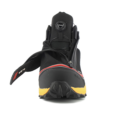 La chaussure montante Skincross S7L de type trekking outdoor proposée par S.24 est fabriquée avec une tige en toile et une membrane imperrespirante DryIn® qui assure une imperméabilité optimale tout en permettant l’évacuation de la transpiration. Conçue pour un usage en extérieur exigeant, elle comporte une guêtre intégrée étanche, fermée par glissière, qui évite l’infiltration d’eau, de neige, de boue ou de débris dans le chaussant. Sous cette guêtre, le dispositif de serrage de la tige est le système rotatif Freelock® qui associe une molette et un câble fin résistant – par rotation, le câble s’enroule autour d’un disque pour effectuer un serrage uniforme sans risque de détente. L’opération est rapide et précise et peut être réalisée facilement avec des gants.