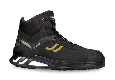 Appartenant à la ligne J-Royal, la chaussure de sécurité montante Jalking de Jallatte, de style Urban, est construite avec une tige en microfibre hydrofuge aspect nubuck, doublée de cuir de veau souple. Un insert en TPU intégré au laçage par sept paires d’œillets et un embout pare-pierre en polyuréthane viennent renforcer le maintien du pied et protéger des chocs. La semelle d’usure en PU intègre un insert taille XL en E-TPU Infinergy® de BASF qui restitue plus de 55% de l’énergie accumulée pendant la marche. La première de propreté Select, en cuir de veau souple et polyuréthane Dynamic de BASF® à mémoire de forme, amortit les points de pression, améliore la répartition du poids et l’absorption des chocs talonniers. Elle peut être remplacée par une première orthopédique Secosol®. Embout 200 J en aluminium et lame anti-perforation Flextane type S. Chaussure ESD normée S3S SC CI FO SR.