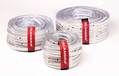 La société danoise Scangrip vient de sortir une ligne de trois rubans led de 15, 25 et 50 m de longueur délivrant respectivement un éclairage de 15 000 lm, 25 000 lm et 50 000 lm sur un angle de vision de 120° pour des consommations de 135, 225 et 450 watts. Ces Rope Light permettent d’apporter de la lumière sur des grandes longueurs dans les chantiers, le long d’allées, dans des tunnels, des cages d’escalier, etc. ainsi que dans des endroits difficiles d’accès grâce à leur flexibilité. Ils sont classés IP66, une protection de haut niveau contre l’eau et la poussière, IK07 contre les chocs (impacts légers à modérés) et peuvent fonctionner à des températures pouvant descendre jusqu’à -10°C. Ils sont fabriqués dans un plastique souple qualitatif qui conserve sa transparence dans le temps. Pour un rangement pratique, une bande scratch est fournie pour les enrouler entre deux utilisations.