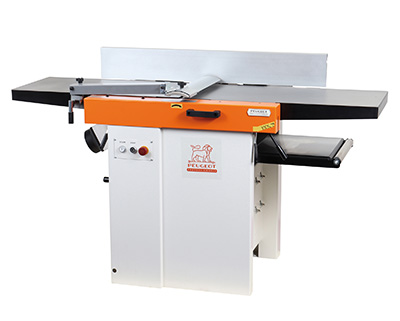 La gamme Peugeot comporte trois raboteuses-dégauchisseuses de formats large, intermédiaire et compact. Le plus important, conçu pour des usages professionnels exigeants, concentre tout le savoir-faire déployé par la marque en la matière. Entraîné par un moteur de 4 000 watts alimenté en triphasé, cette machine réf. PRD410HCT comporte des tables en fonte rectifiée et un arbre hélicoïdal de ∅ 70 mm à 44 plaquettes carbure quatre faces synonyme de finition supérieure. Elle permet de réaliser des égalisations de surface sur 3 mm en dégauchissage et de 4 mm en rabotage, avec un réglage rapide des paramètres et sur une largeur de coupe maximale de 410 mm. Elle se distingue aussi par une grande rapidité de passage de l’une à l’autre fonction, l’accessibilité des commandes en façade, un guide inclinable de 90° à 45°, un système d’aspiration des copeaux (vendu à part) et un kit roulettes optionnel pour le transport. Les deux autres modèles, en monophasé, conservent l’arbre hélicoïdal avec respectivement 34 et 24 plaquettes pour des dégauchissages et rabotages de 3 et 2 mm pour des largeurs de coupes maximales de 310 et 254 mm.