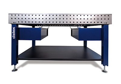 Introduite sur le marché en mars 2025, la première gamme de tables de soudure VPdolex, commercialisée à la marque Dolex®, est aujourd’hui déclinée dans les trois tailles 1 000 x 500 mm, 1 500 x 1 000 mm et 2 000 x 1 000 mm avec de nouvelles dimensions prévues pour 2026. Ces tables de soudure sont fabriquées en acier de construction brossé de type S355 avec un plateau de 12 mm d’épaisseur dont la planéité est comprise entre ± 0,3mm/m et ±⊇0,6mm/m (norme ISO 2768-1 sur les tolérances des pièces mécaniques) afin de garantir une surface de travail d’une grande précision. Ce plateau est par ailleurs percé en standard de trous de ∅ 16 mm espacés de 100 mm en quinconce pour fixer des éléments ou outils nécessaires aux opérations de soudure (∅ 28 mm sur demande). Enfin, ces tables peuvent être jumelées et leurs capacités de charge élevées permettent de les utiliser pour les travaux lourds – chaque pied peut supporter plus de 200 kg.