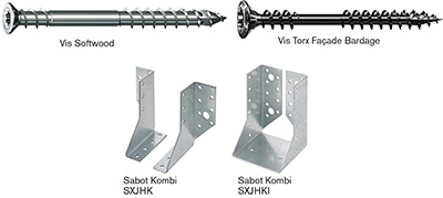 La marque allemande propose également des sabots de charpente Kombi SXJHK et SXJHKI avec des dimensions adaptées au marché français. Fabriqués en tôle d’acier galvanisé à chaud d’une épaisseur de 2 mm, ils offrent pour les premiers une profondeur de montage de 80 mm en assemblage bois/bois, bois/béton et bois/acier, et pour les seconds avec ailes intérieures une profondeur de montage de 78 mm en assemblage bois/bois uniquement.