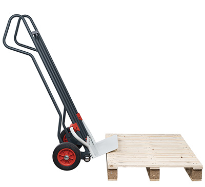 Cette mécanique permet d’accompagner sans effort la pose ou la dépose d’une cargaison sur une palette, sans besoin d'y faire monter puis redescendre le diable. Ajoutons pour celui-ci que son châssis haut est adapté à la manipulation de charges encombrantes et que ses poignées fermées permettent d’adapter la position des mains au fur et à mesure de la manipulation. Il est proposé avec des roues en caoutchouc ou pneumatiques et est garanti dix ans.