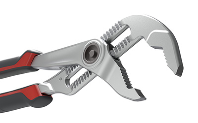 La pince multiprise à réglage rapide Facom 181B est dotée d’un mécanisme de réglage exclusif à effet cliquet d’une grande rapidité d’utilisation. En appliquant une pression sur le bouton latéral de l’axe, la mâchoire inférieure est libérée et il suffit de faire glisser le manche – prolongé par la partie supérieure de la mâchoire – pour bien ajuster cette dernière sur l’objet à saisir. Ensuite, relâcher le bouton-poussoir verrouille la position.