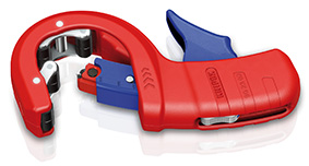 Grâce à la géométrie spécifique de sa lame à deux niveaux, le coupe-tube DPT50 de Knipex permet en une seule opération de couper et de chanfreiner des tubes en PVC, PP ou PE de 32, 40 ou 50 mm de diamètre dont l’épaisseur de paroi est comprise entre 2,5 et 3,5 mm. Avec cet outil, la pression exercée sur le tube est très faible, ce qui exclut pratiquement tout risque de rupture, et la vue sur le point de coupe reste dégagée pour garantir un travail précis. Il est également possible de couper de courtes sections de tube à partir d’une longueur d’environ dix millimètres, un avantage lorsque les tubes doivent être préparés avec une surépaisseur de sécurité avant d’être raccourcis avec précision.