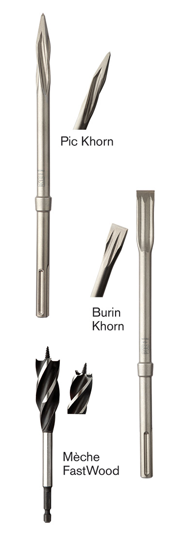 Le fabricant de forets béton Diager commercialise depuis avril 2024 la gamme des pics et burins Khorn. Ces outils conçus pour la démolition en utilisation intensive se révèlent particulièrement efficaces grâce à leurs cannelures et pointes torsadées auto-affûtantes qui conservent longtemps leur efficacité, avant que leur fil ne soit trop émoussé. Les cannelures des burins procurent en outre davantage de précision à l’usage tandis que la pointe torsadée des pics permet une destruction verticale et horizontale de la matière lors des impacts et diminue les risques de blocage. La marque indique ainsi des capacités d’enlèvement améliorées de 30% avec jusqu’à 50 heures d’utilisation pour ses burins et 100 heures pour ses pics. Un anneau de force intégré sur la tige vient par ailleurs améliorer le confort et l’efficacité en réduisant le retour d’énergie. La gamme comprend en 250 mm de longueur un pic de ∅ 12 mm et un burin de 20 mm de large en emmanchement SDS-plus et en 400 mm de longueur un pic de ∅ 20 mm et un burin de 25 mm de large en emmanchement SDS-max.