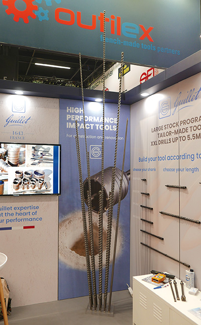 Grâce à son savoir-faire de fabricant spécialiste, la société Guillet a sur les dernières années progressivement rentré en stock des fabrications spéciales de forets béton SDS-max de grandes longueurs. Ainsi, alors qu’elle ne disposait auparavant en livraison immédiate que d'outils faisant jusqu’à 920 mm de longueur, l’entreprise a haussé cette dimension jusqu’à 1 350 mm en 2024 et aujourd’hui jusqu’à 3 500 mm dans les diamètres 16 à 40 mm. Ces forets ont une hélice qui court sur toute leur longueur pour optimiser l’évacuation des poussières. Guillet propose par ailleurs sur fabrication spéciale des outils allant jusqu’à 5 500 mm de longueur. Tous ces forets sont utilisés pour des applications industrielles et dans la rénovation dans le bâtiment, par exemple pour le percement de logements pour des micropieux.