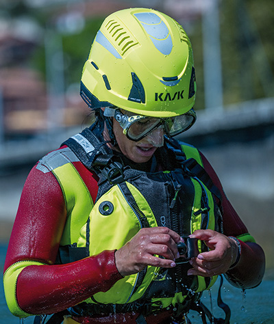 Développé pour des missions comme la lutte contre les feux de forêt (EN 16471) et le secours technique (EN12473) et de montagne (EN12492), le casque de protection Quantum de l’Italien Kask voit aujourd’hui sa polyvalence étendue au sauvetage aquatique (EN 1385) grâce à l’ajout de panneaux de protection supplémentaires.