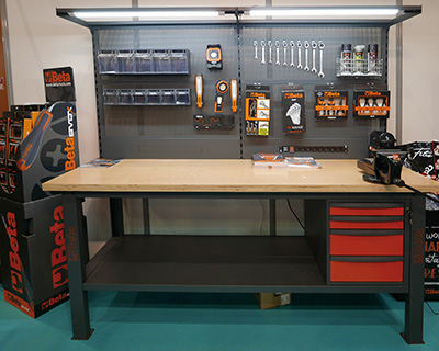 La nouvelle gamme Modular des établis modulables Beta permet de configurer son poste de travail en l’adaptant à ses exigences grâce à des nombreuses possibilités d’agencement. Ces équipements ont comme base un plan de travail de 75 cm de profondeur monté sur une robuste structure en acier à quatre pieds. Ce plateau, d’une épaisseur de 38 mm, est proposé en bois contreplaqué stratifié ou en MDF revêtu d’acier inoxydable dans les deux longueurs de 160 et 210 cm. Il est monté à 90,3 cm sur un piètement dont les quatre pieds peuvent être ancrés au sol – ils sont fixes ou réglables en hauteur – ou être montés sur roulettes.