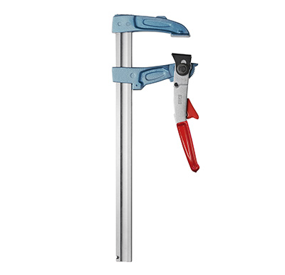 Outre son levier, cette presse est constituée d’une tige de 30 x 8 mm associée à des mors en fonte nodulaire dotés de freins en acier trempé (58 HRC). Son ouverture de serrage va de 200 à 1 500 mm et sa saillie est de 83 mm. Son poids est de 1,5 kg, inférieur de 30% à la génération précédente.