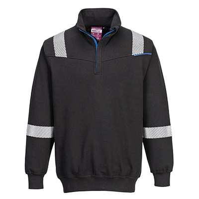 Dans la gamme de la société Portwest qui couvre tout le spectre des équipements de protection individuelle, la série FR de la ligne WX3 regroupe une offre de vêtements résistant à la flamme constituée d’un t-shirt, d’un polo à manches longues, d’un sweat, d’une veste softshell, d’une veste de travail, d’une combinaison, d’une cotte à bretelles et d’un pantalon de travail. A titre d’exemple, le sweat a comme tissu extérieur un Modaflame tricoté 60% modacrylique 39% coton 1% fibre de carbone 300 g/m2 dont les qualités intrinsèques de résistance à la flamme ne s’altèrent pas au lavage, tissu en outre classé UPF 40+ pour bloquer 98% des rayons UV. Ce vêtement comporte un col zippé, un ourlet et des poignets côtelés et des bandes réfléchissantes segmentées thermocollées. Il peut être porté dans un environnement Atex (EN 1149-5). Il est par ailleurs normé EN ISO 11612 A1, B1, C1, F1 (chaleur et flamme), EN 61482-2 et ASTM F1959/F1959M (effets thermiques des arcs électriques) et EN 17353 B2 (visibilité pour risques modérés).