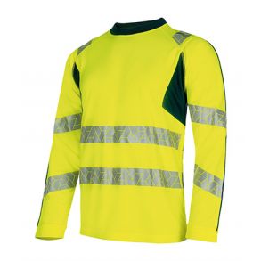 Le t-shirt à manches longues Synq Littup de Sioen Apparel est normé haute visibilité classe 2 en tailles XS à L et classe 3 en tailles XL à 4XL, avec de plus une protection solaire de niveau SPF50+.